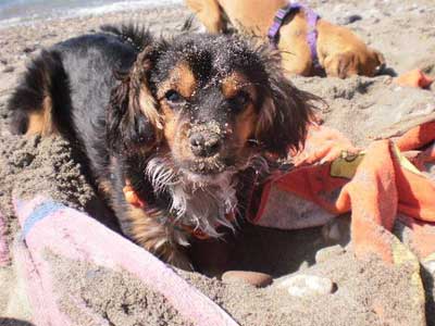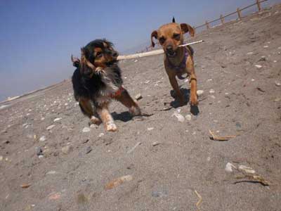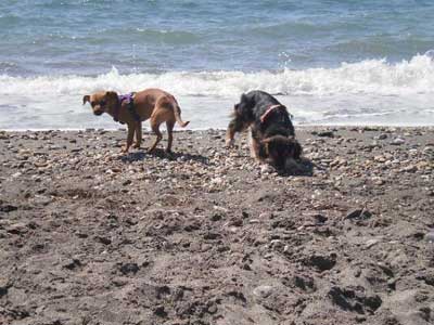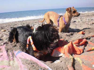 Alim en casa. Cómo disfruta en la playa con su nueva hermanita!!